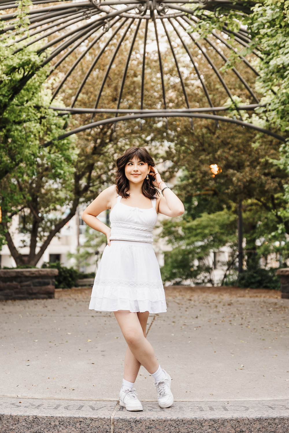 After we captured the family portion of the session, the parents headed off to enjoy some time on their own while I continued photographing their daughter. This allowed us to shift into a more personal set of portraits to honour her graduation. A graduation family photo session Toronto can feel both exciting and reflective, and we leaned into that feeling by exploring a few different backdrops within walking distance.